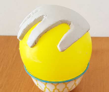 • Laisser sécher la main en pâte à modeler sur le ballon afin de créer un creux.