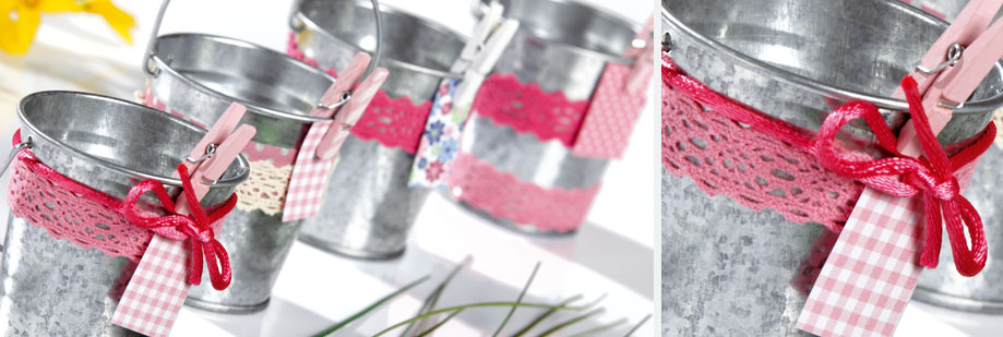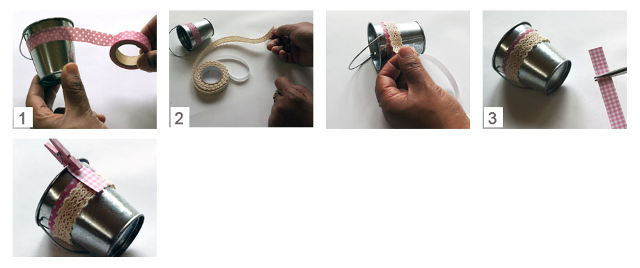 • Accrocher une languette de papier à motifs sur le rebord du seau à l’aide d’une pince à linge.