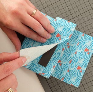 • Couper une bande de Queentape à motifs de 12 cm environ pour fermer la base du porte-cartes.