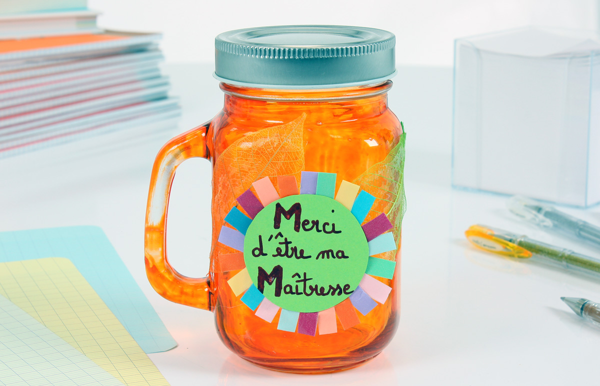 • Découper un cercle et des bandes de papier de couleurs pour composer une fleur.