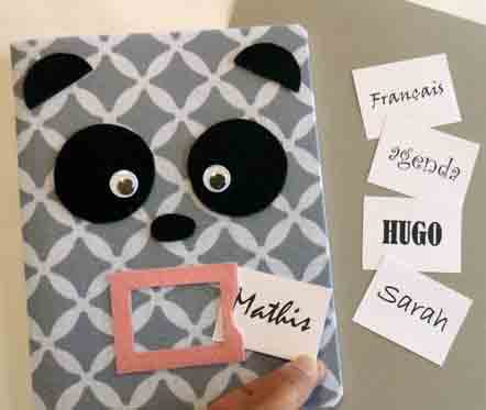 • Personnaliser le cahier en ajoutant un porte nom, fabriqué en feutrine adhésive (H: 5,5 cm - L: 7 cm).