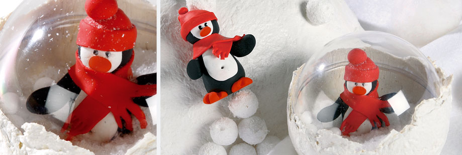 • Mettre du sucre au fond de la demi-sphère d’une boule et y placer le pingouin.