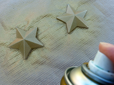 • A l’aide d’une peinture acrylique, de préférence en spray, peindre les étoiles sur les parties extérieures puis laisser sécher.