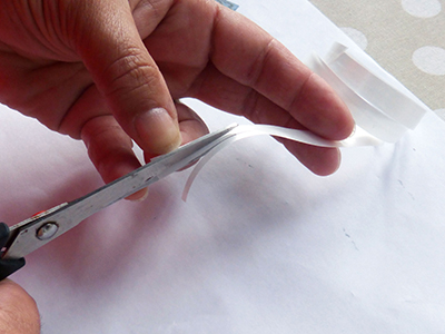 • Découper un bout de bolduc blanc puis le recouper en 3 dans le sens de la longueur. Le friser puis le placer dans une demi-sphère.