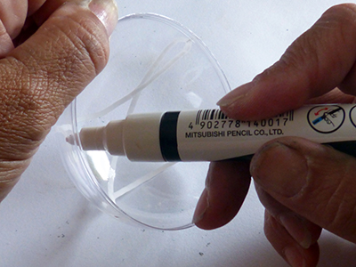 • Dessiner des traits à l’intérieur des 2 demi-sphères à l’aide d’un Posca blanc.