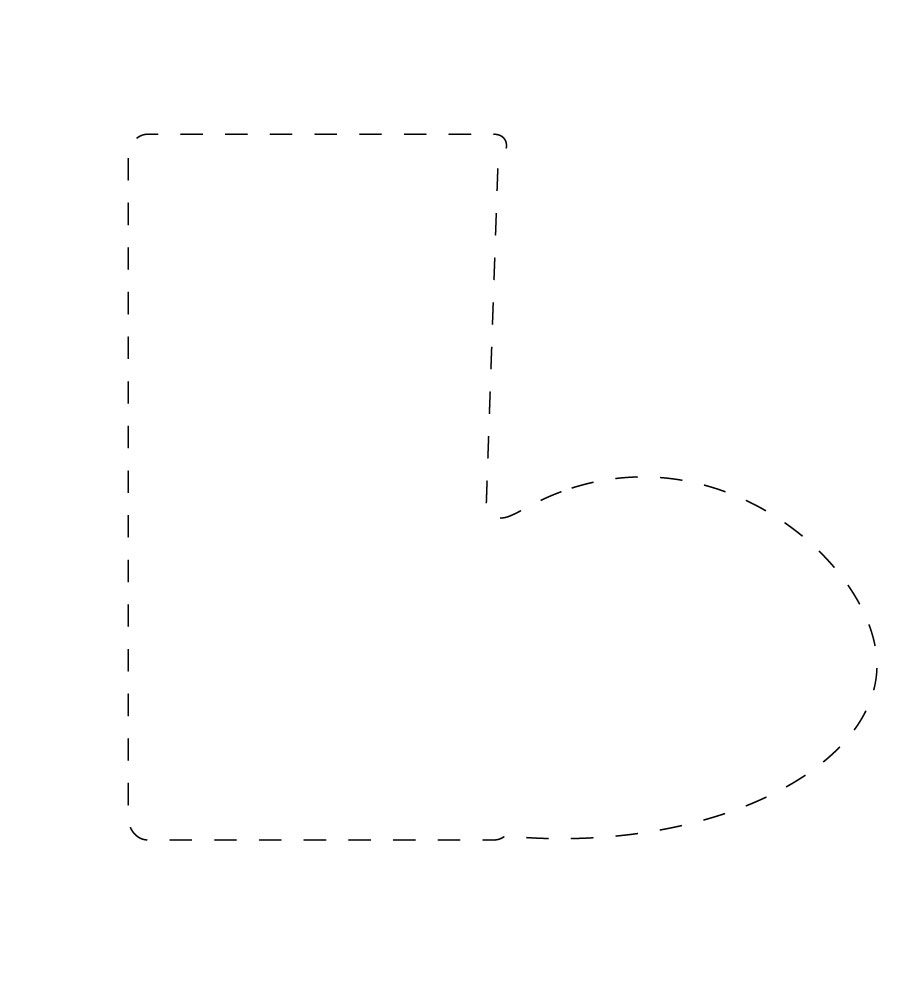 Dessiner le contour de la chaussette sur la feutrine à l’aide du gabarit et la-découper. Vous obtenez les 2 moitiés de votre botte reliées par la tige centrale.