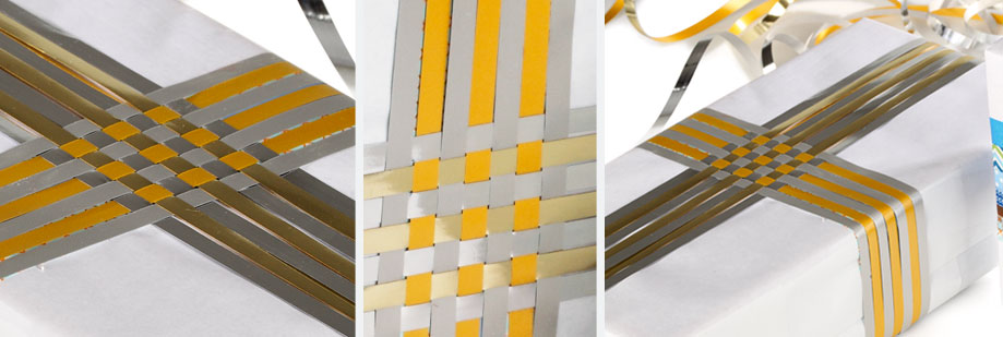 Couper quelques bandes de bolduc, elles doivent être assez longues pour envelopper votre cadeau.