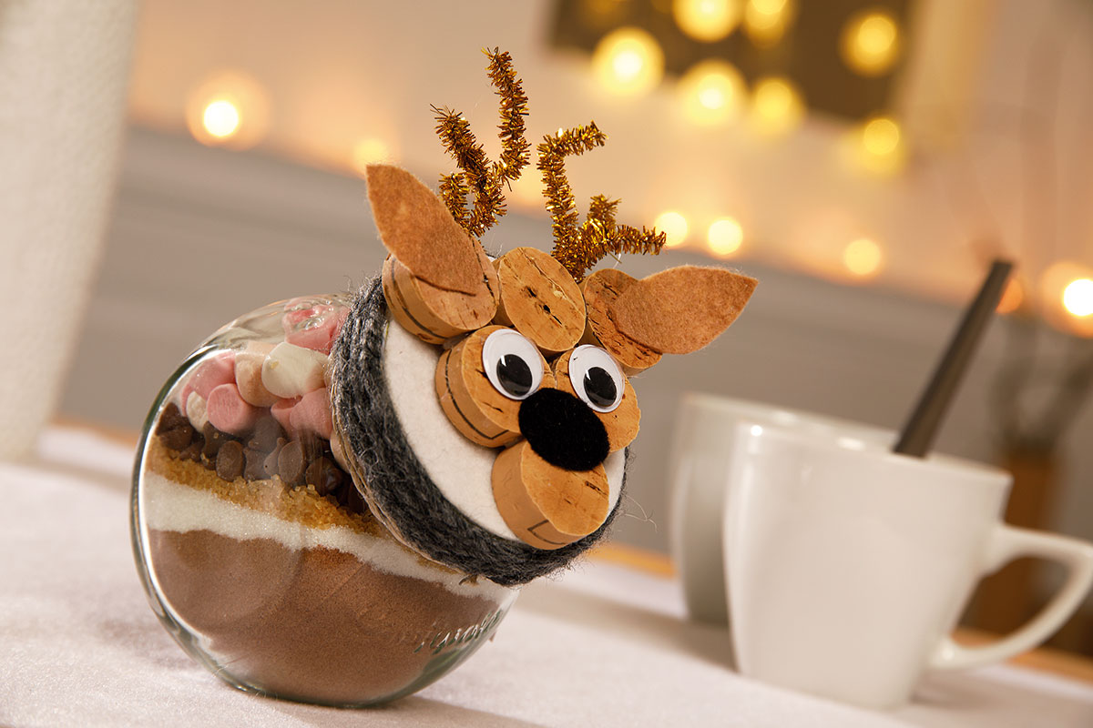 • Visser le couvercle sur le pot avant de coller la tête du renne au pistolet à colle (cela évitera qu’il ait la tête de travers !)