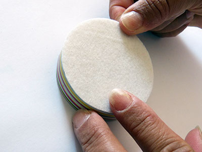 • Tracer et découper un cercle dans la feutrine blanche à l'aide du couvercle du pot, puis le coller.