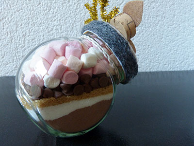 • Remplir le bocal avec les ingrédients du kit chocolat chaud.