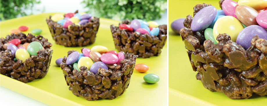 Démouler et garnir chacun des nids de mini-œufs de Pâques ou de petits bonbons.