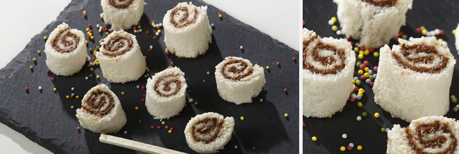 • Retirer le film étirable et découper les tartines roulées en tronçons.